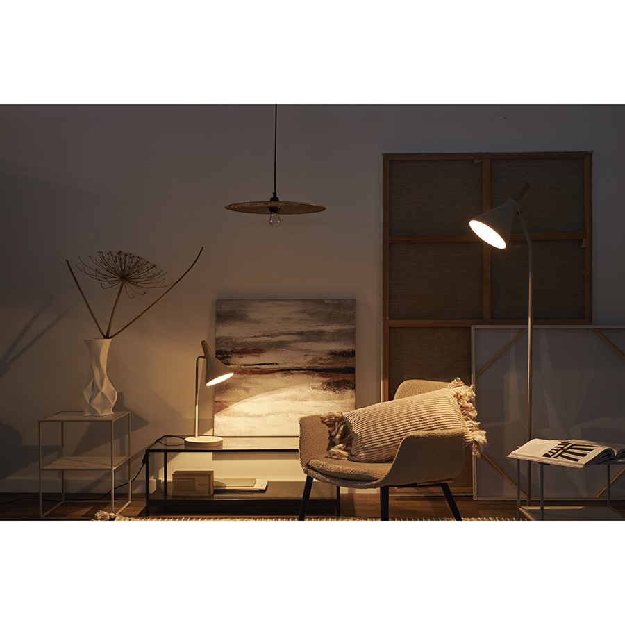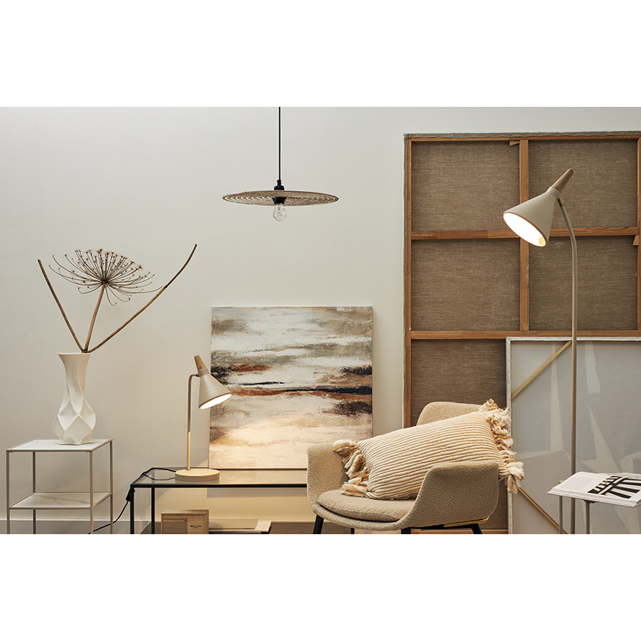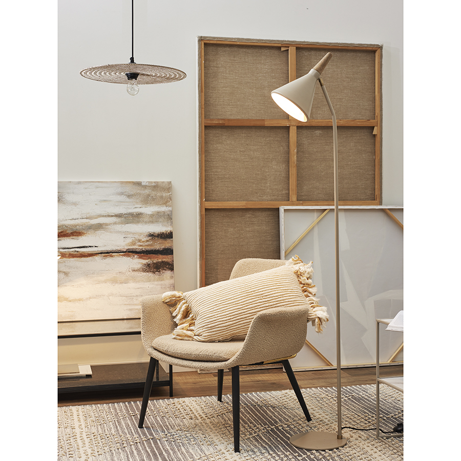 "Торшер Thor в приятном бежевом оттенке – прекрасный вариант для оформления интерьера в стиле минимализм, хай-тек, сканди или лофт. Напольный светильник с основанием и плафоном из железа отлично гармонирует с мебелью и декором из любых материалов.