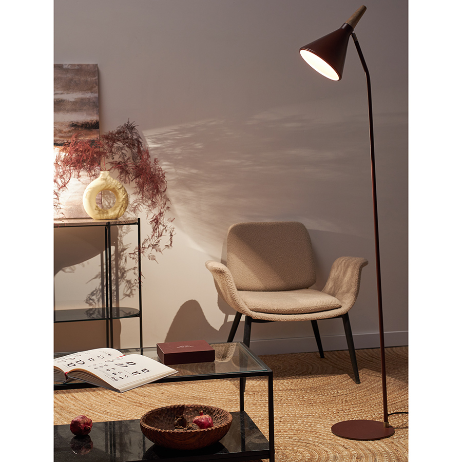 "Торшер Thor в приятном сливовом оттенке – прекрасный вариант для оформления интерьера в стиле хай-тек, сканди или лофт. Напольный светильник с основанием и плафоном из железа отлично гармонирует с мебелью и декором из любых материалов.