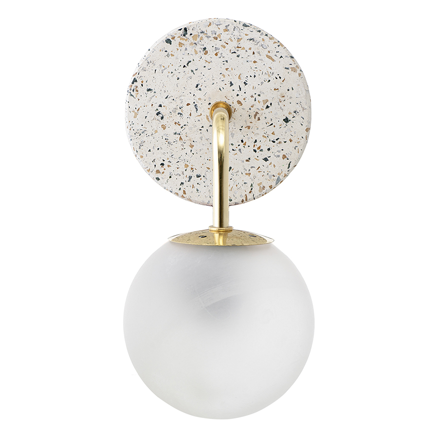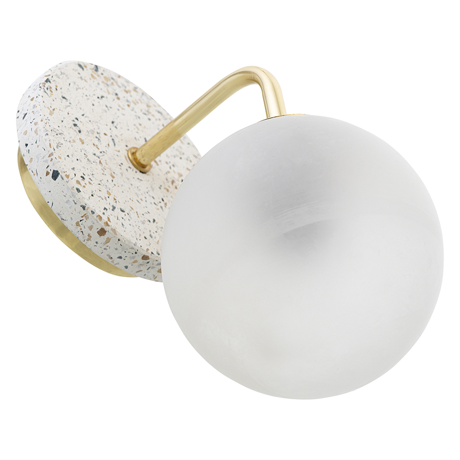 Материал: каменный композит терраццо, железо, стекло. Размеры: 32x15,5x22 см. Цвет: белый/золотой. Тип цоколя: Е27. Степень пылевлагозащиты: IP20. Максимальная мощность ламп: 25 Вт. Напряжение: 220-240 В. Площадь освещения: 1,7 кв.м. Лампы в комплекте: нет.