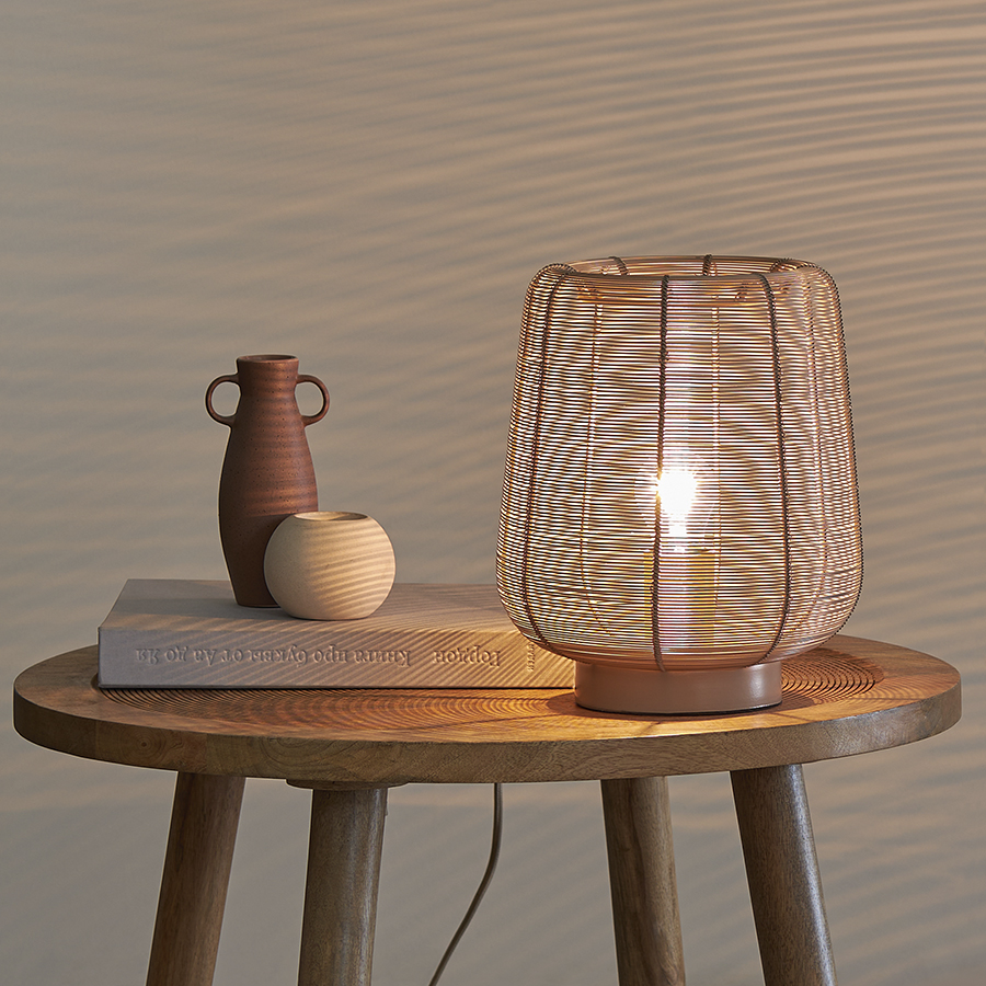"Лампа настольная Vinger от бренда Bergenson Bjorn – прекрасный способ добавить интерьеру характер и индивидуальность. Светильник привлекает качественным исполнением и интересным дизайном. Его плафон из металлической сетки рисует на стенах и потолке живописные тени, создавая в помещении волшебную атмосферу.