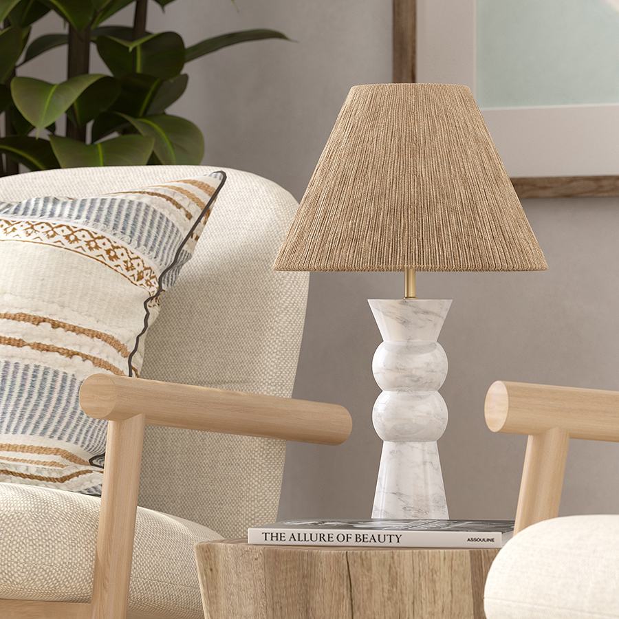 Материал: мрамор, сизаль. Размеры: 30х6х52 см. Цвет: белый. Тип цоколя: Е27. Степень пылевлагозащиты: IP20. Максимальная мощность ламп: 25 Вт. Напряжение: 220-240 В. Длина провода: 2,5 м. Переключатель: встроенный. Площадь освещения: 1,7 кв.м. Лампы в комплекте: нет.