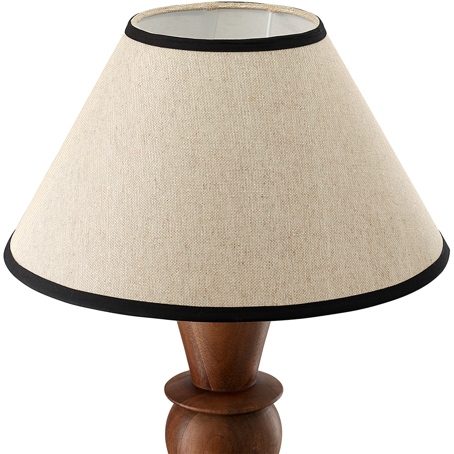 Материал: основание – дерево манго, абажур – 50%, лен, 50%, джут. Диаметр основания: 11,4 см. Диаметр абажура: низ – 38,5 см, верх – 16 см. Высота абажура: 24 см. Высота светильника: 52 см. Цвет: бежевый. Тип цоколя: Е27. Максимальная мощность лампы: 25 Вт. Степень пылевлагозащиты: IP20. Переключатель: на проводе. Длина провода: 2 м. Лампы в комплекте: нет.