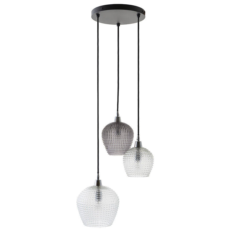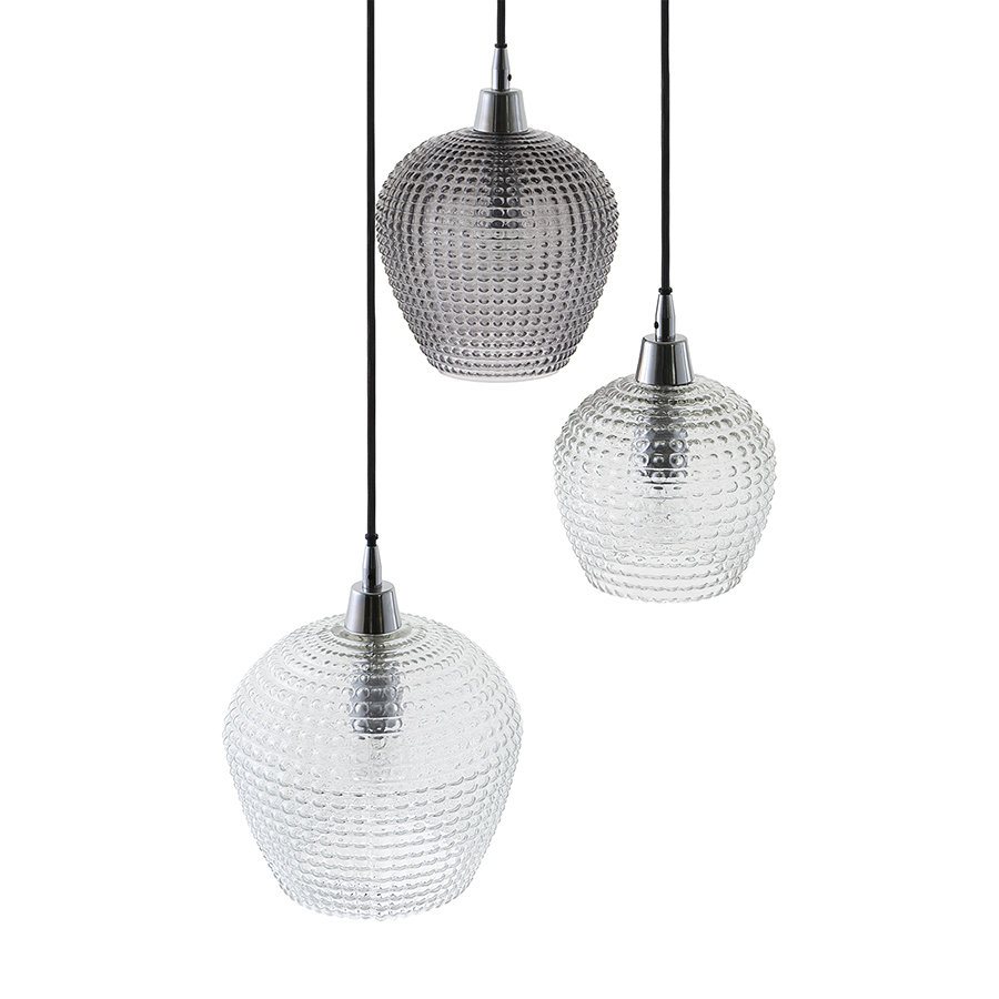 Материалы: стекло, железо. Размеры: 50х50х150 см. Цвет: серый/прозрачный. Длина провода: 1,1 м, 1,3 м, 1,5 м. Тип цоколя: 3хЕ27. Максимальная мощность ламп: 3х25 Вт. Степень пылевлагозащиты: IP20. Площадь освещения: 5 кв.м. Лампы в комплекте: нет.