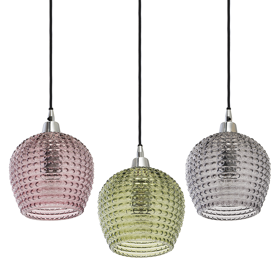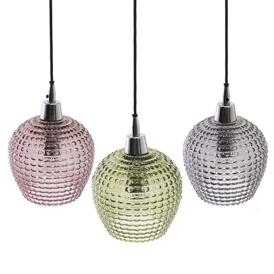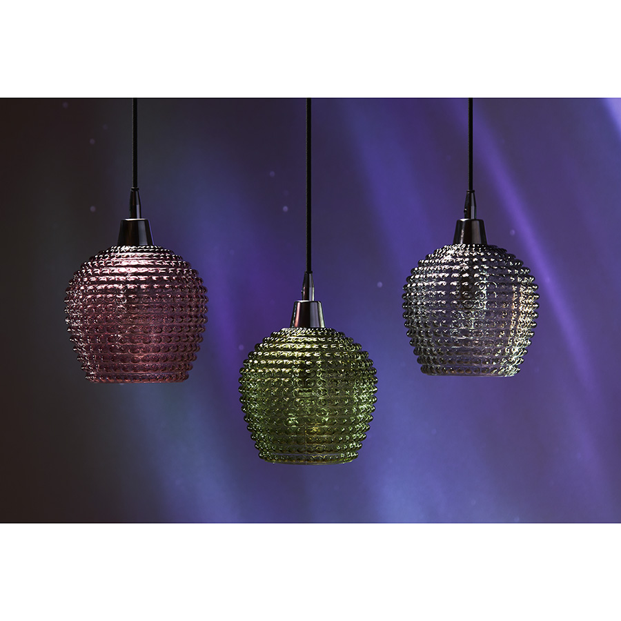 Материалы: стекло, железо. Размеры: 65х18х150 см. Цвет: сливовый/зеленый/серый. Длина провода: 1,1 м, 1,3 м, 1,5 м. Тип цоколя: 3хЕ27. Максимальная мощность ламп: 3х25 Вт. Степень пылевлагозащиты: IP20. Площадь освещения: 5 кв.м. Лампы в комплекте: нет.