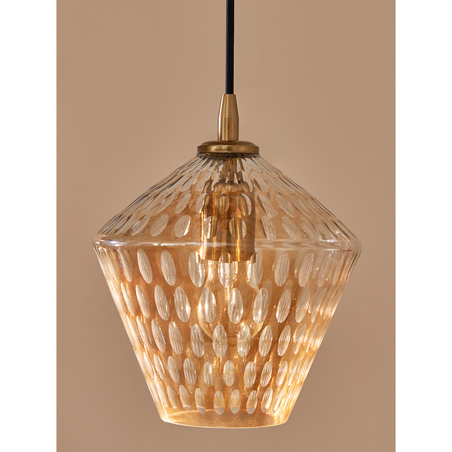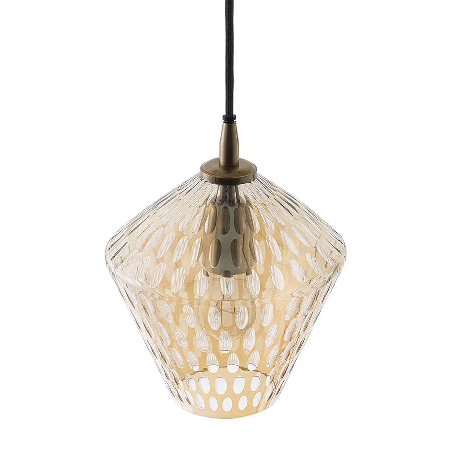Материалы: стекло, железо. Размеры: 20х20х25 см. Цвет: янтарно-золотой. Длина провода: 1,5 м. Тип цоколя: Е27. Максимальная мощность ламп: 40 Вт. Степень пылевлагозащиты: IP20. Диаметр монтажной пластины: 11 см. Площадь освещения: 2,7 кв.м. Лампы в комплекте: нет.