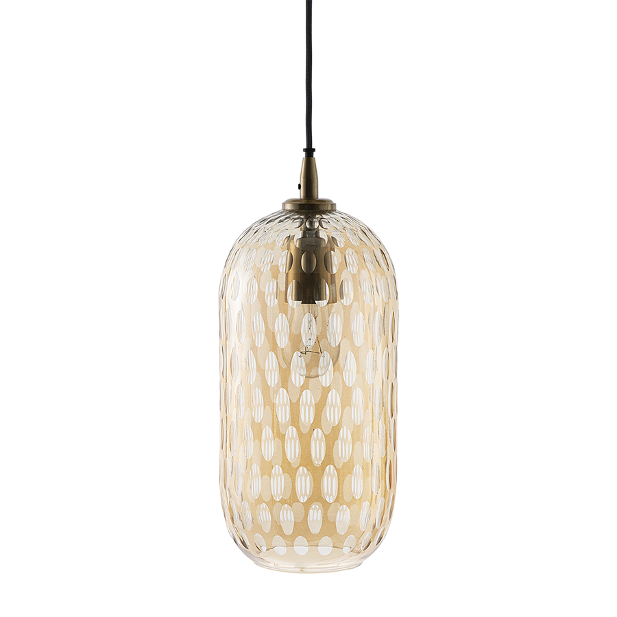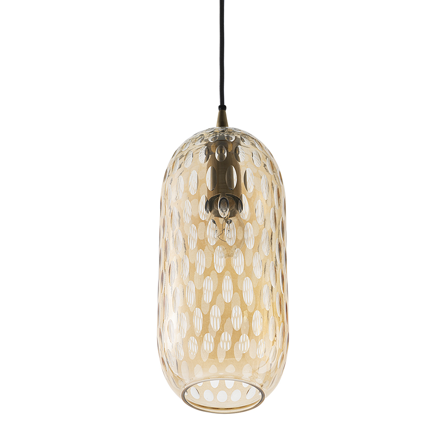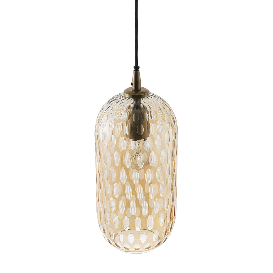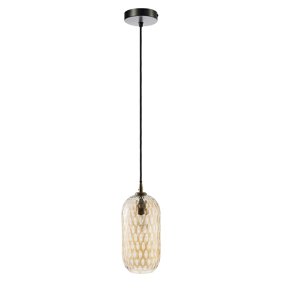 Материалы: стекло, железо. Размеры: 26х26х42 см. Цвет: янтарно-золотой. Длина провода: 1,5 м. Тип цоколя: Е27. Максимальная мощность ламп: 40 Вт. Степень пылевлагозащиты: IP20. Диаметр монтажной пластины: 11 см. Площадь освещения: 2,7 кв.м. Лампы в комплекте: нет.