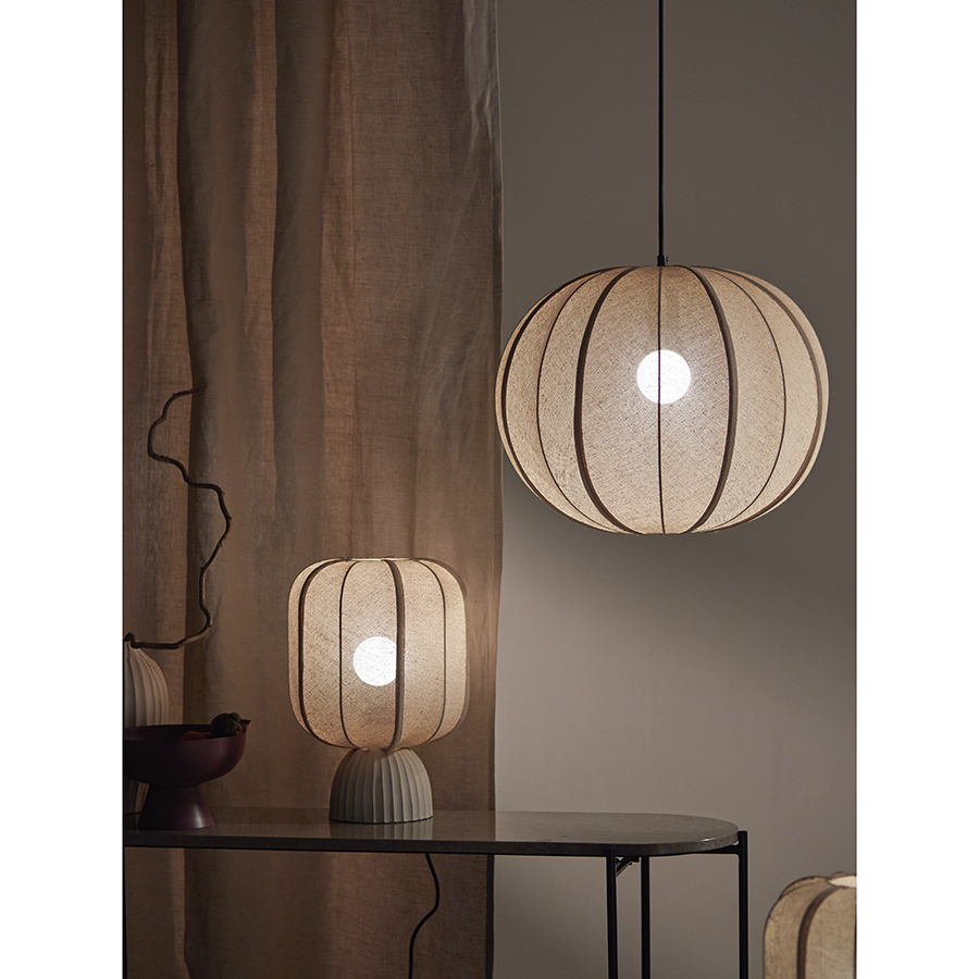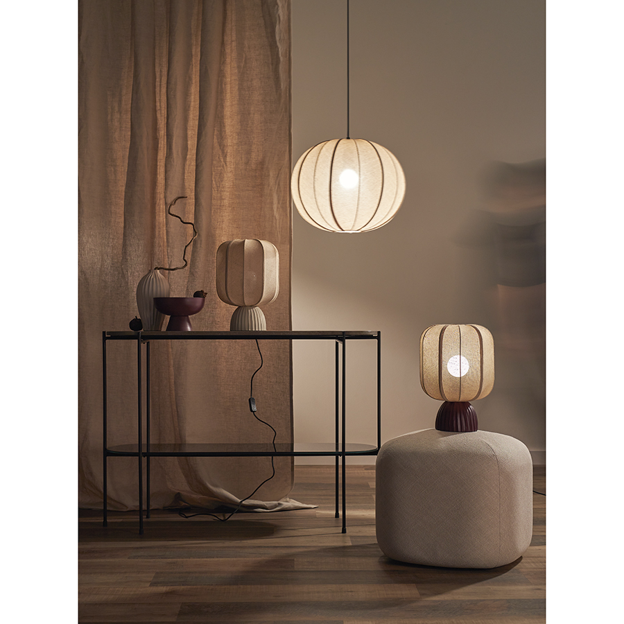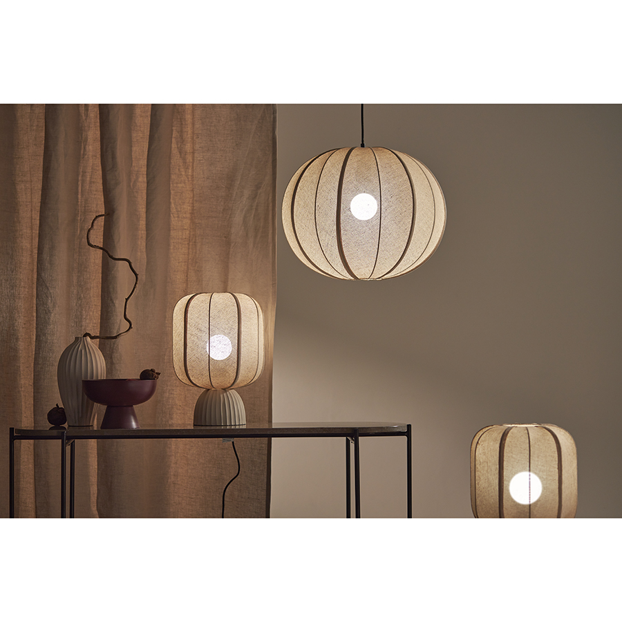 - Плафон из прочной джутовой ткани придает светильнику аутентичный вид, а также смягчает свет от лампы, мягко рассеивая его по комнате.