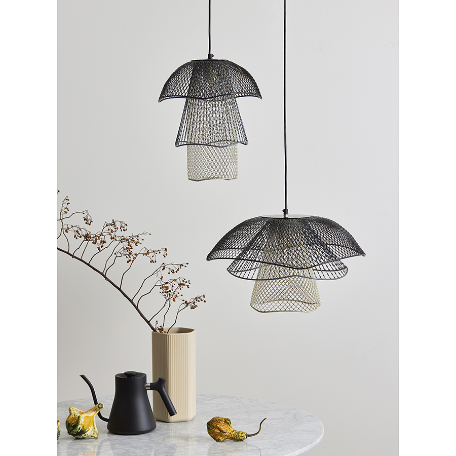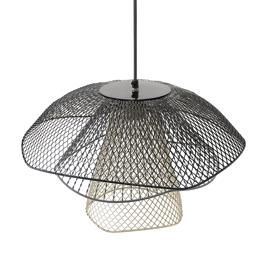 - Светильник с плафоном из железной сетки смотрится необычно и идеально подходит в качестве акцентного элемента.