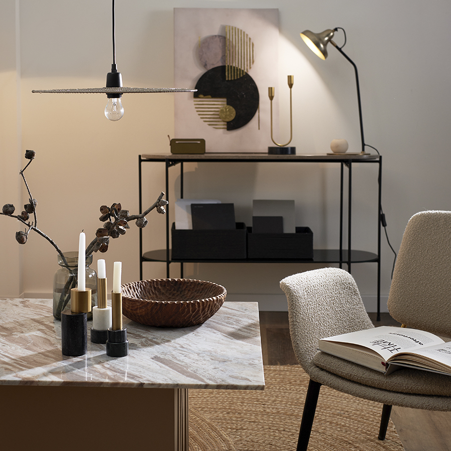 - Светильник с абажуром из железной сетки смотрится необычно и идеально подходит в качестве акцентного элемента.
