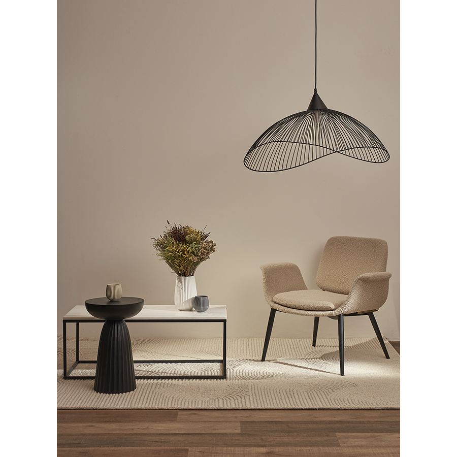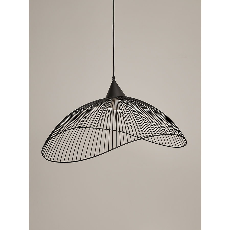 "Светильник подвесной Vinger от бренда Bergenson Bjorn – прекрасный способ добавить интерьеру характер и индивидуальность. Подвес привлекает качественным исполнением и интересным дизайном. Его плафон из металлической сетки рисует на стенах и потолке живописные тени, создавая в помещении волшебную атмосферу.